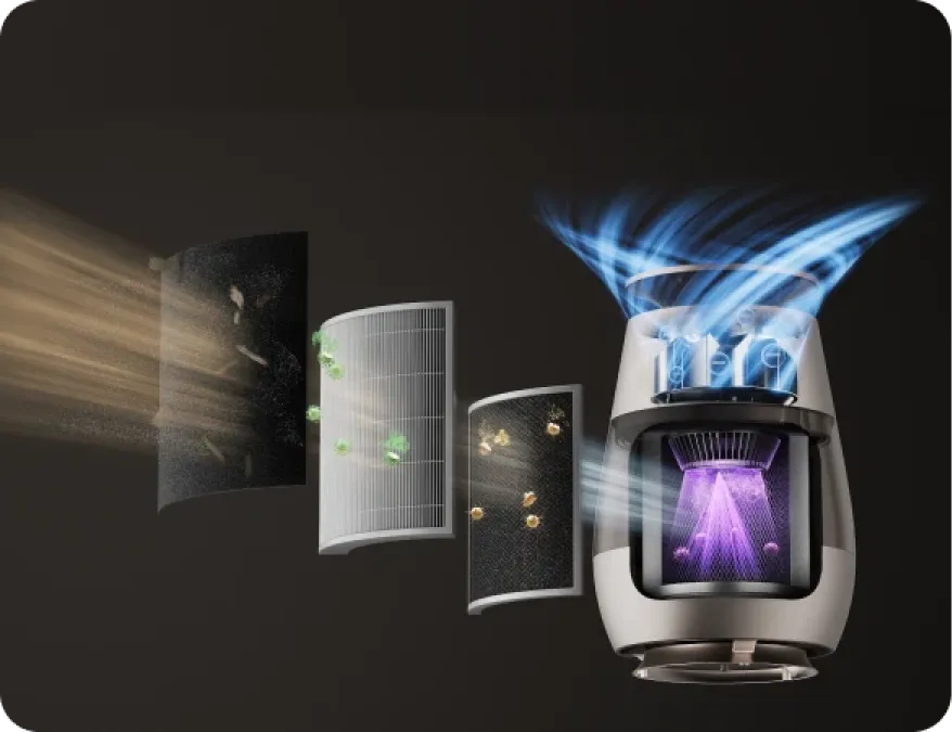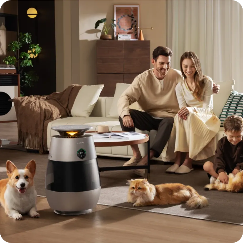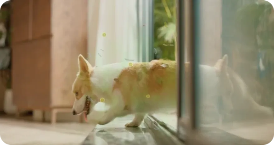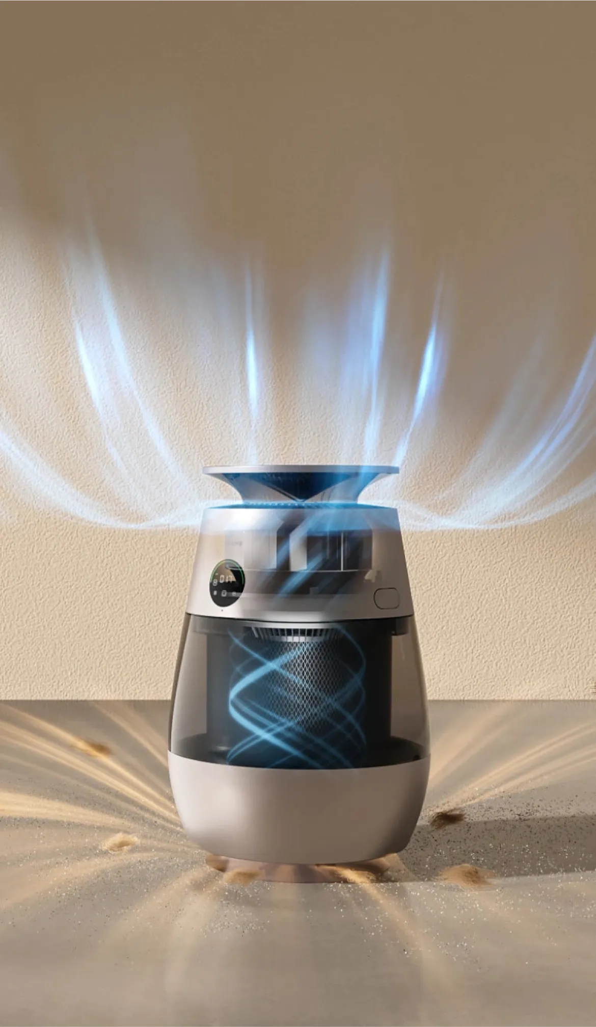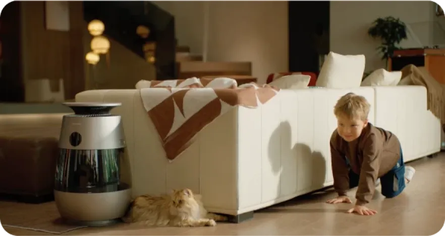 Dankzij de haaropvang op lange afstand*, automatische verzameling, krachtige reiniging en hoogfrequente circulatie kan het snel rondvliegend haar na het energieke spel van de kat of dagelijks uitvallend haar opvangen, waardoor 99,9% van het rondvliegende haar en de klitten onder meubels en in de kieren van de bank worden verwijderd.