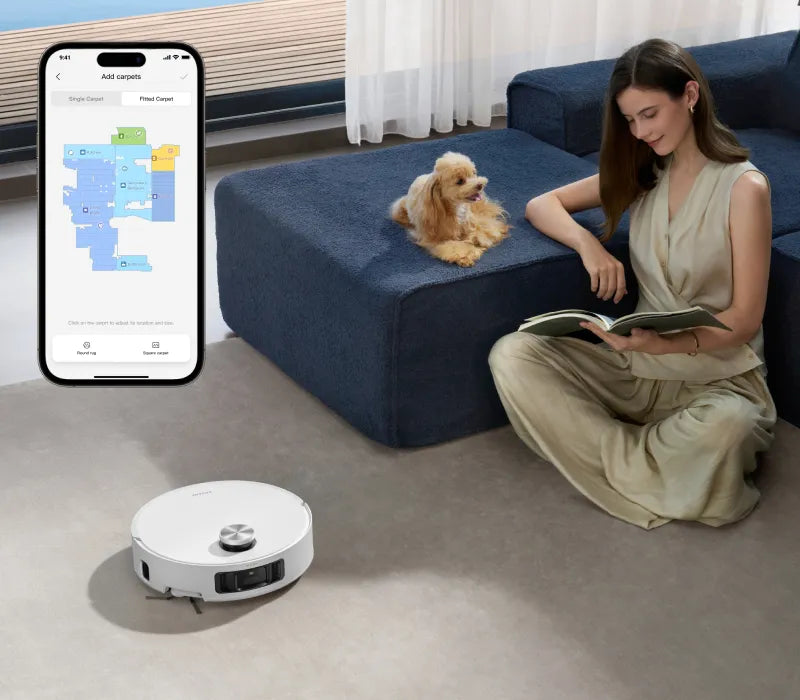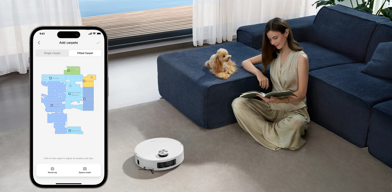Configureer uw robotstofzuiger eenvoudig in de schoonmaak-app om vloerkleden met kwastjes, zoals Marokkaanse vloerkleden, yogamatten en speelmatten te vermijden.