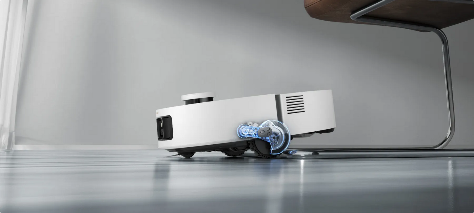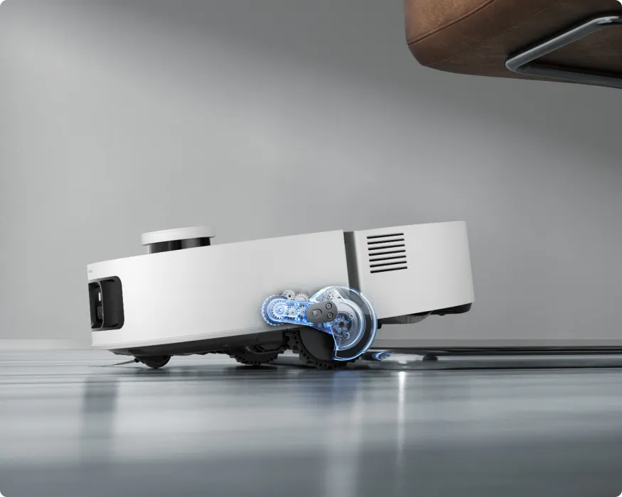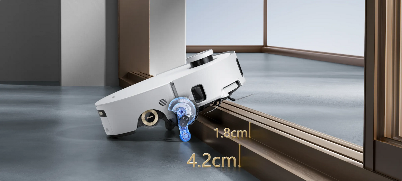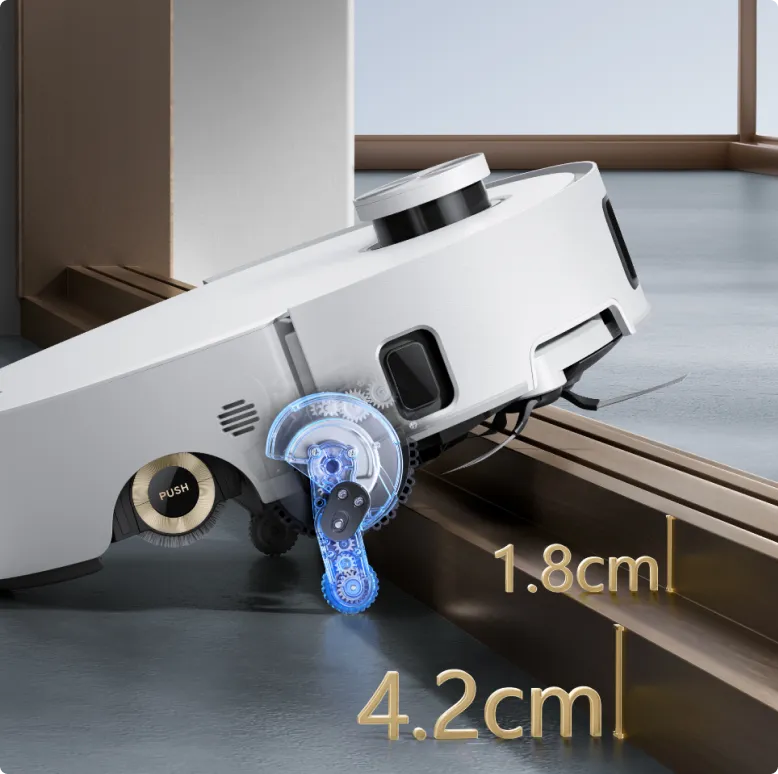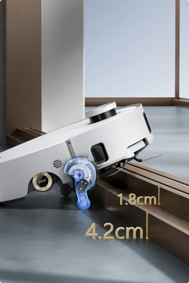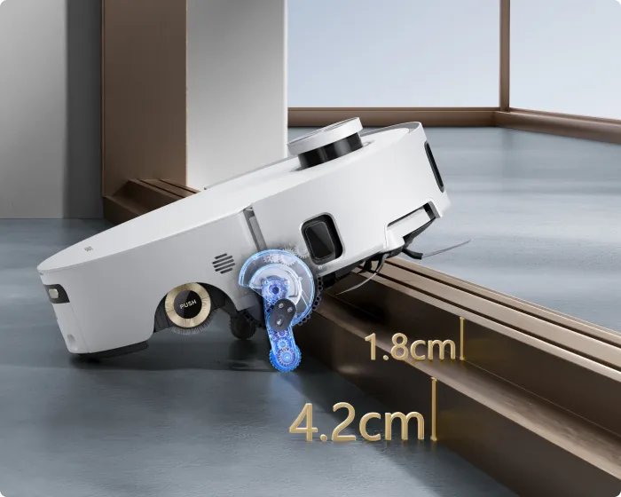 Het ProLeap™-systeem van de Aqua10 Roller stelt de robotstofzuiger in staat om moeiteloos drempels, schuifdeurrails, U-vormige meubels en tredes tot 6 cm* te overbruggen.