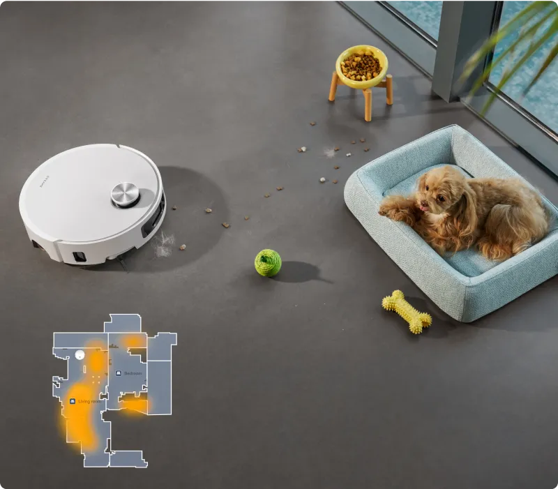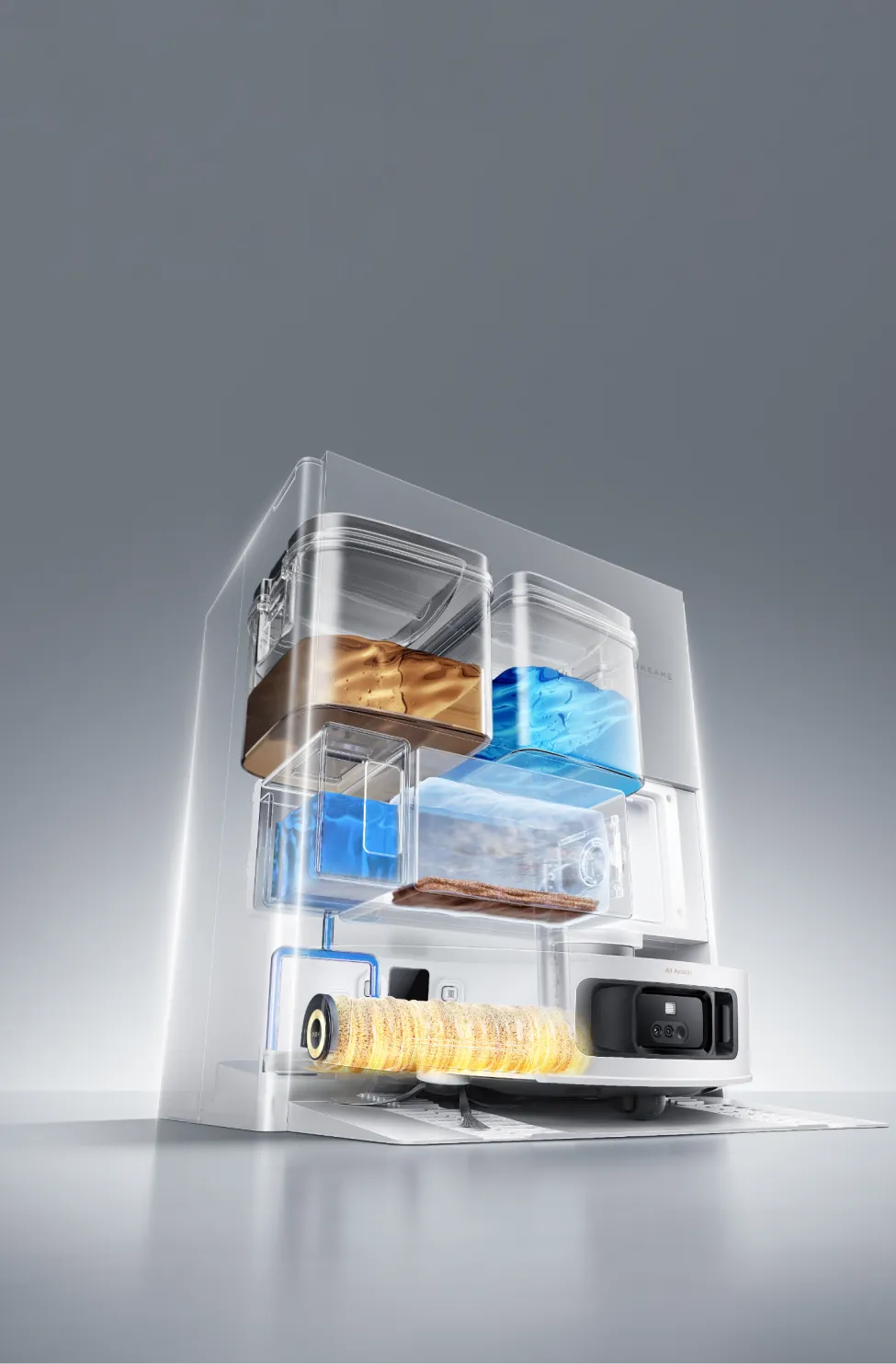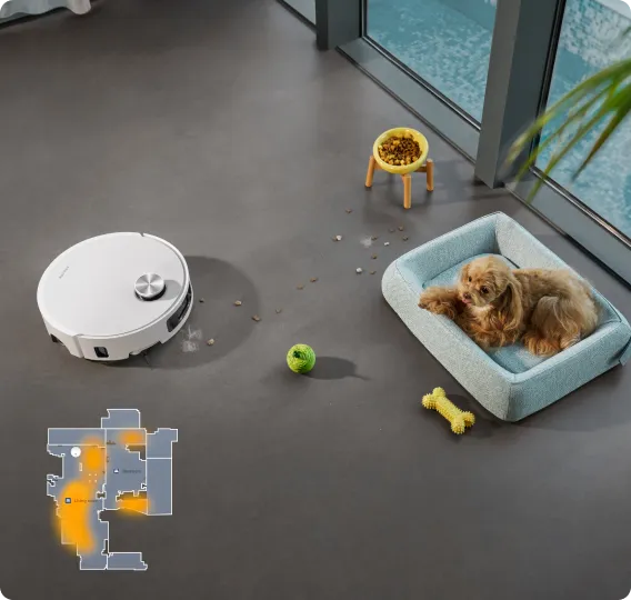 Detecteert nauwkeurig obstakels, identificeert meer dan 240+ objecten en ziet vuil in slecht verlichte ruimtes voor een veiligere en grondige reiniging, dankzij zijn 3D-gestructureerde licht, LED-lamp en Al-actiecamera.