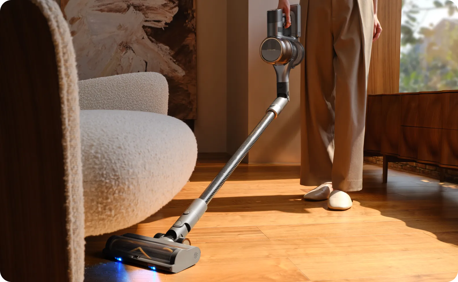 *200 m²: gebaseerd op tests in Dreame Lab, in de Eco-modus met de zachte rolborstel. De werkelijke prestaties zullen variëren, op basis van de specifieke indeling van uw huis.
