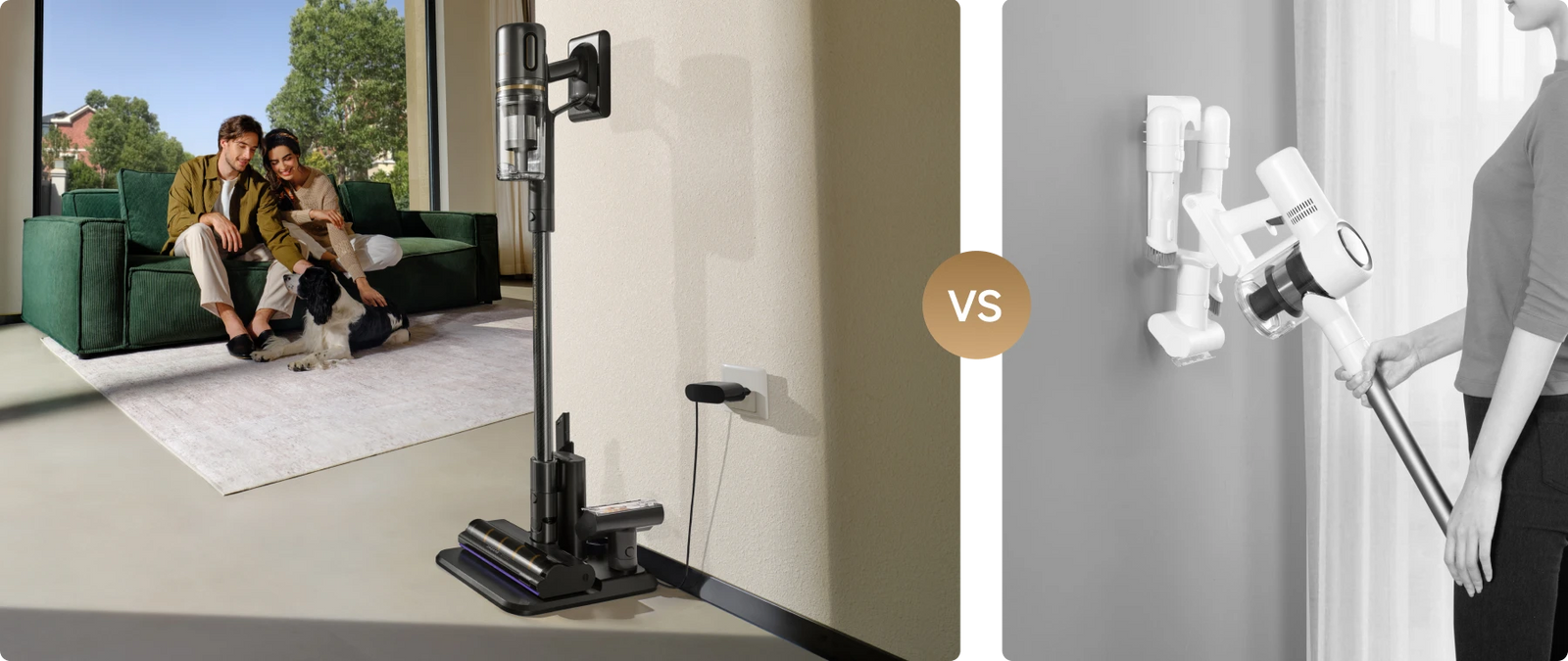 De V20 wordt opgeladen terwijl hij is opgeborgen, zodat hij altijd klaar is voor gebruik. De stofzuiger en accessoires zijn veilig opgeborgen op het basisstation voor gemakkelijke toegang en organisatie.