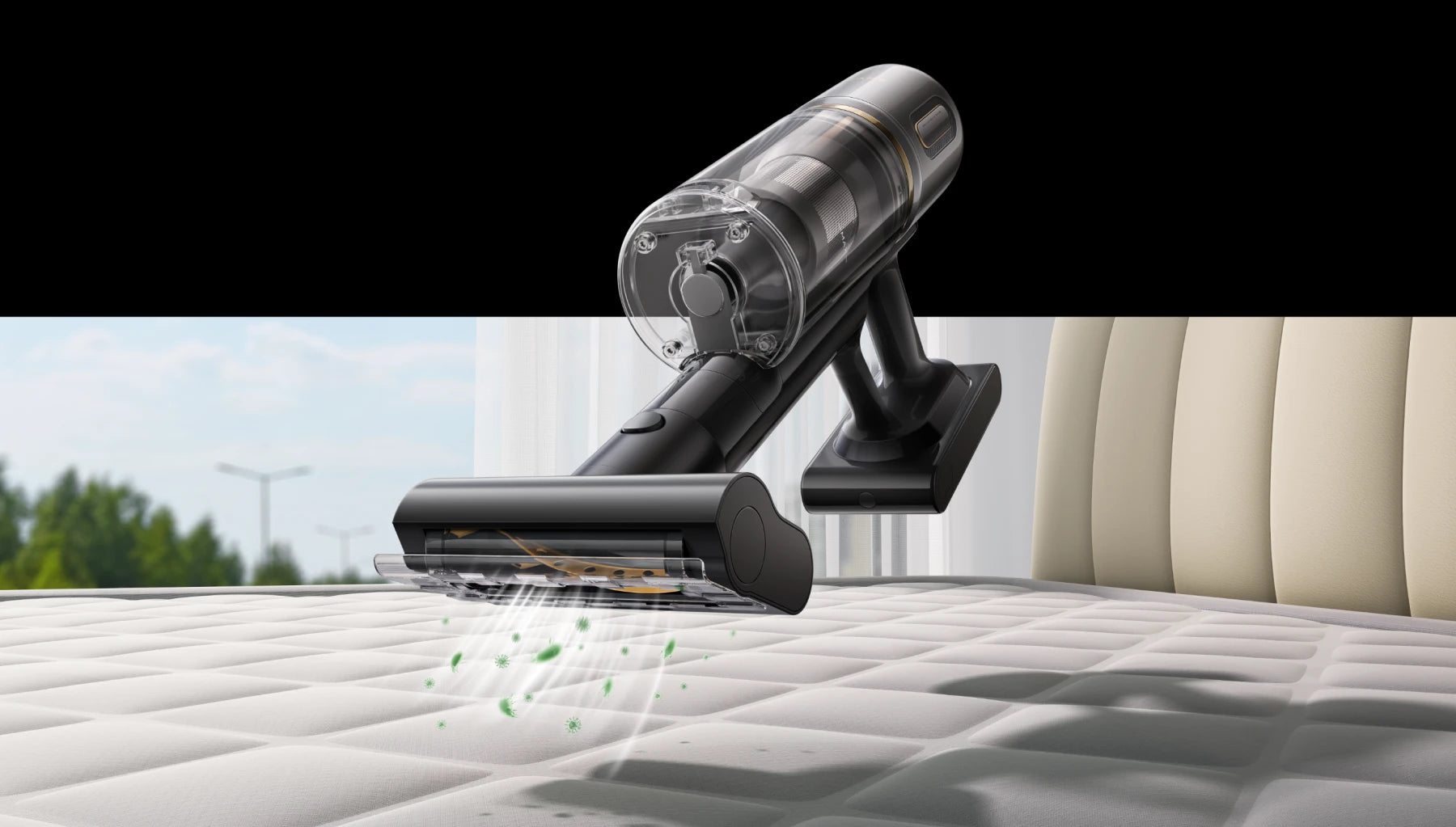 Verwijdert tot 100% van de huisstofmijt uit beddengoed met de gemotoriseerde miniborstel voor een gezondere, allergeenvrije slaap.*