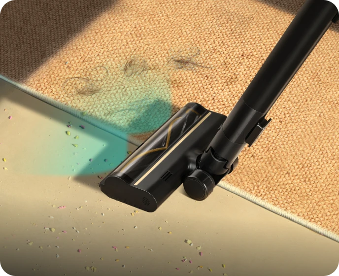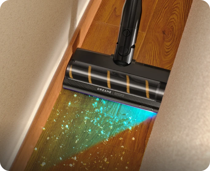 De CelesTect™-verlichting onthult verborgen stof, terwijl de stofsensor de grootte en het volume van de deeltjes detecteert voor een slimmere reiniging.