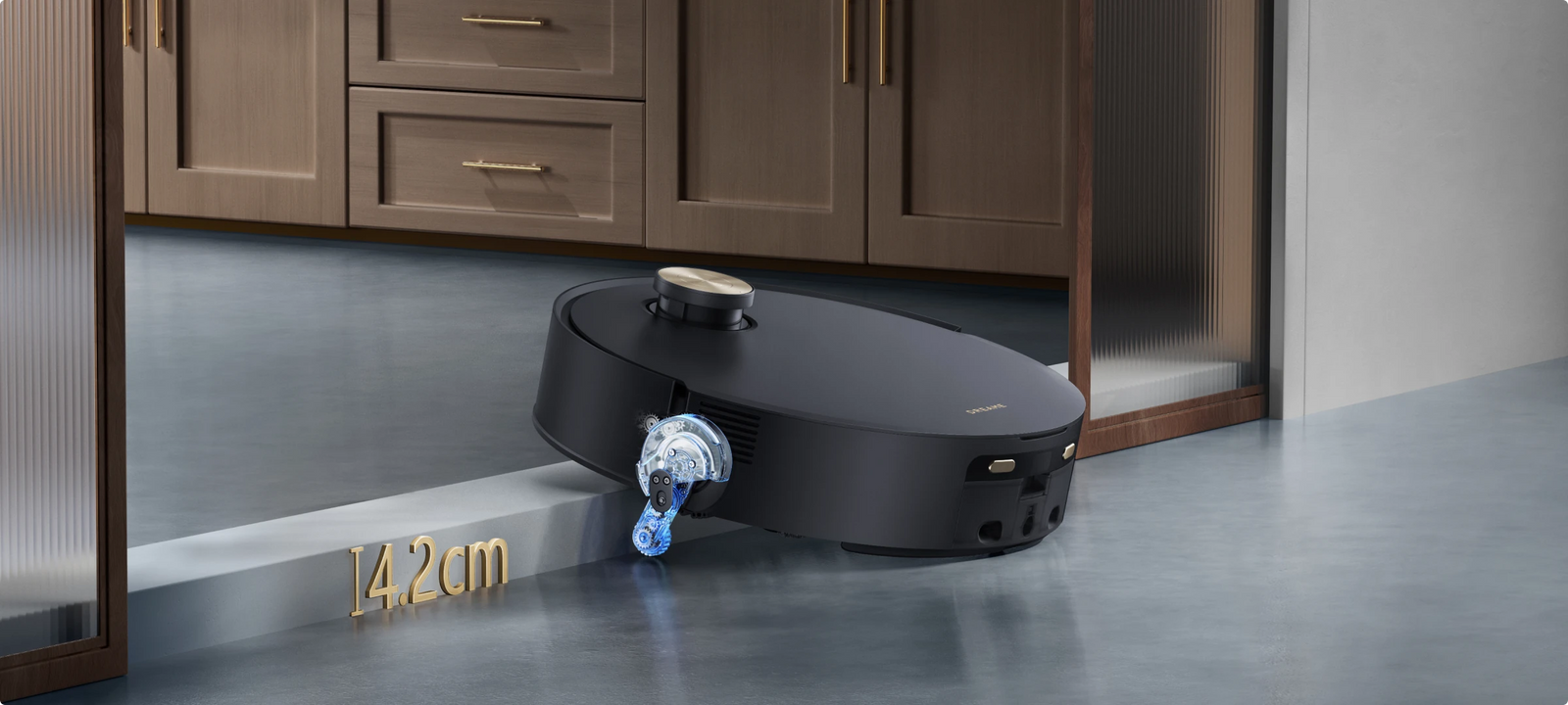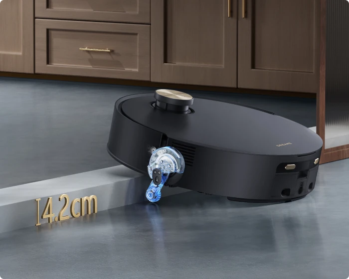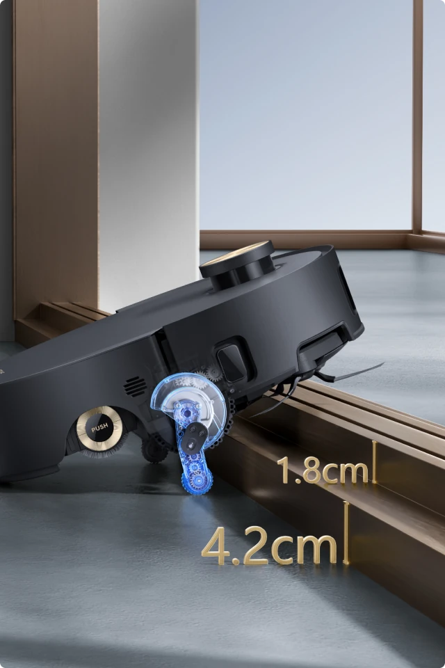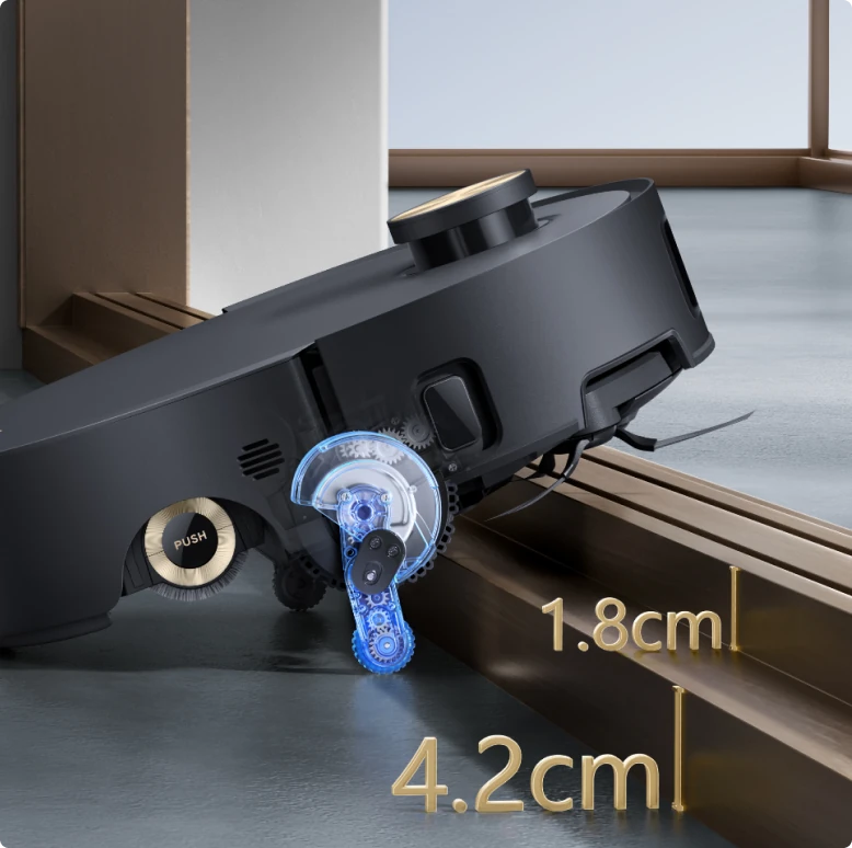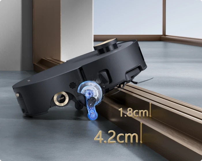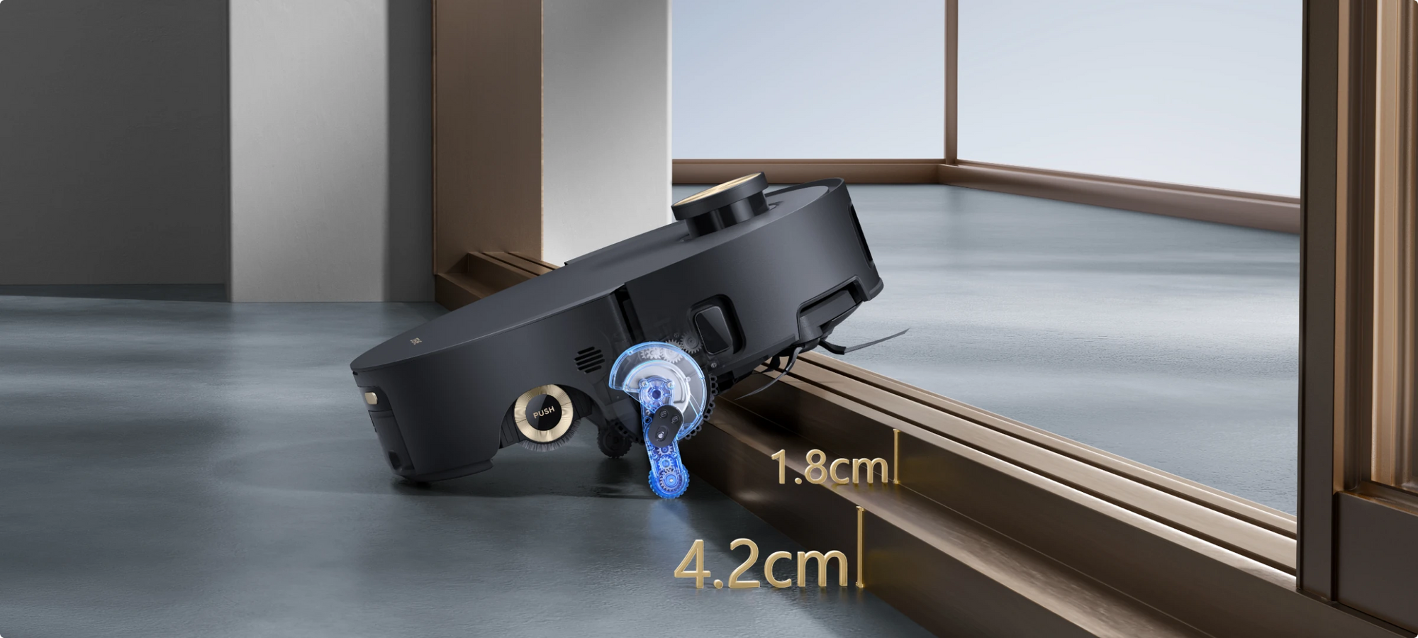 Het ProLeap™-systeem van de Aqua10 Roller stelt de robotstofzuiger in staat om moeiteloos drempels, schuifdeurrails, U-vormige meubels en tredes tot 6 cm* te overbruggen.