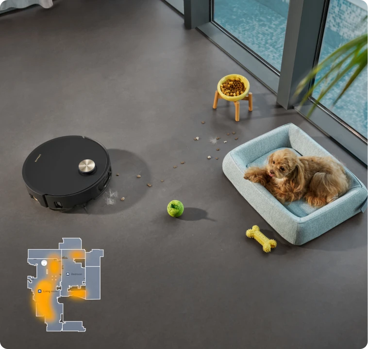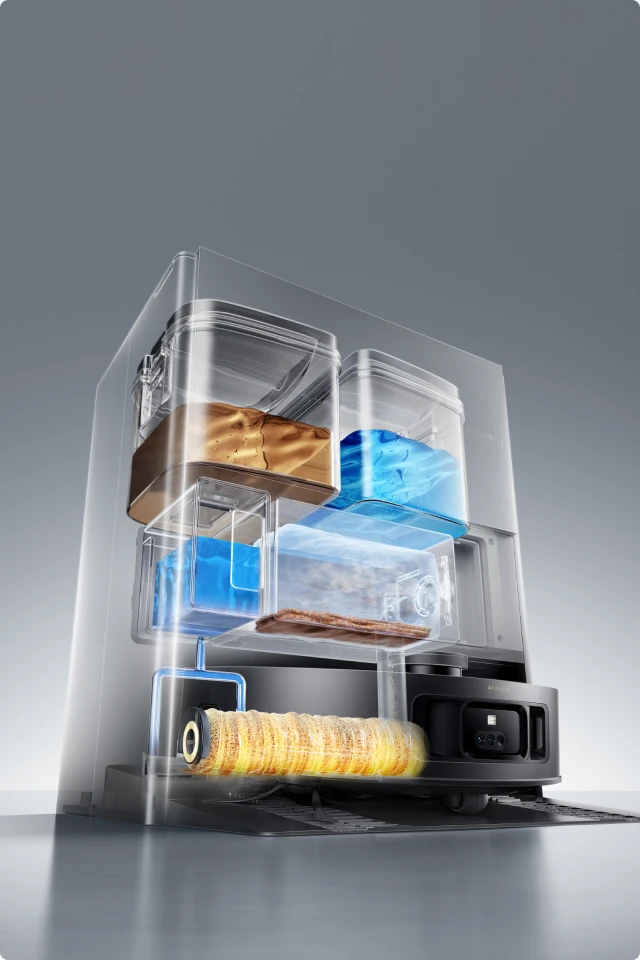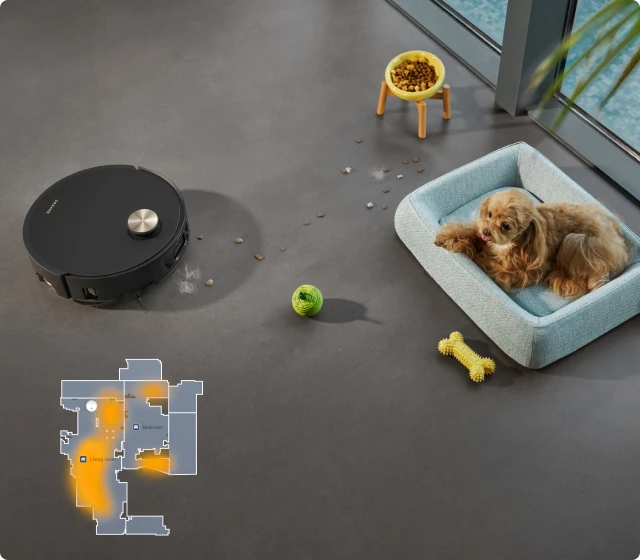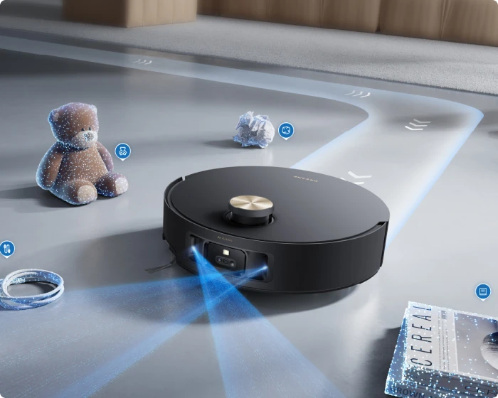 Detecteert nauwkeurig obstakels, identificeert meer dan 240+ objecten en ziet vuil in slecht verlichte ruimtes voor een veiligere en grondige reiniging, dankzij zijn 3D-gestructureerde licht, LED-lamp en Al-actiecamera.