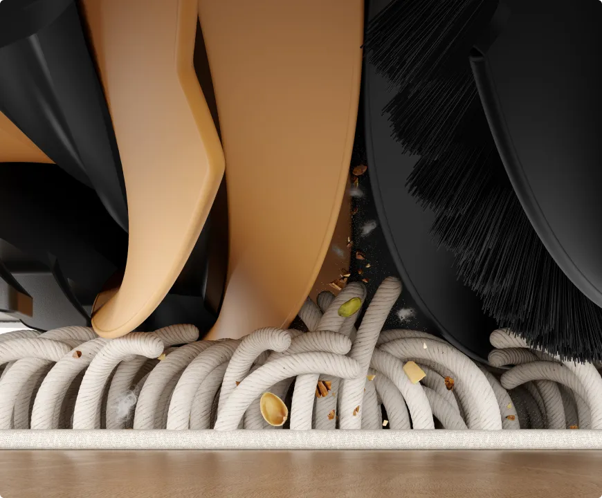 De ongelooflijke Vormax™-zuigkracht van 30.000 Pa zuigt nat en droog vuil op, waardoor deeltjes 100%* worden opgezogen en 99,99%* van de haren wordt verwijderd.