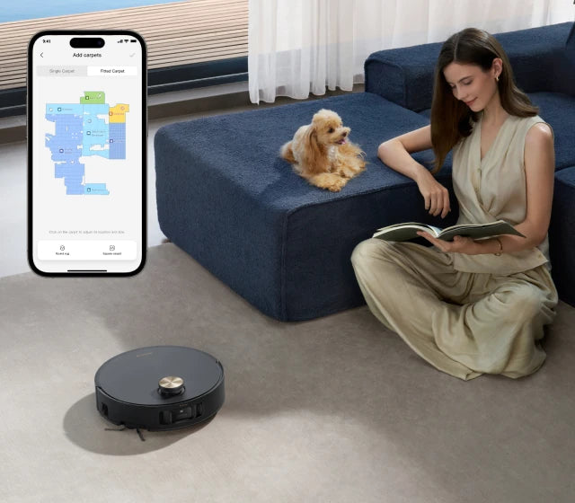 Configureer uw robotstofzuiger eenvoudig in de schoonmaak-app om vloerkleden met kwastjes, zoals Marokkaanse vloerkleden, yogamatten en speelmatten te vermijden.