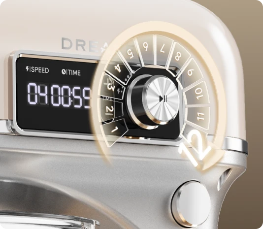 De mixer beschikt over 12 vooraf ingestelde snelheidsniveaus, die aan alle behoeften voldoen, van mengen en kneden tot kloppen.