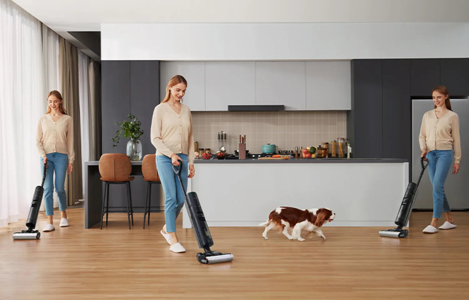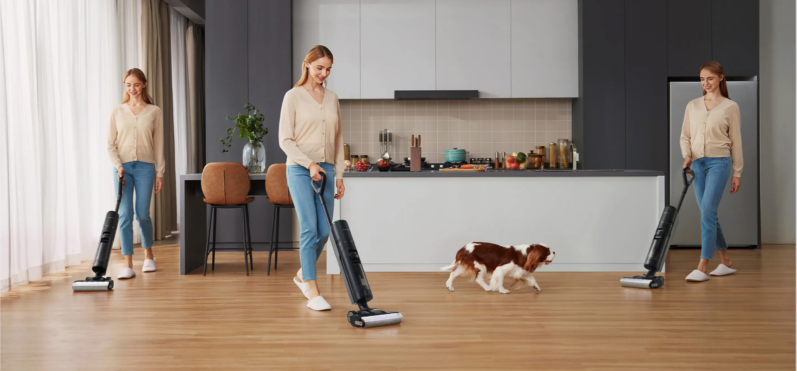 Bang dat de stofzuiger vastloopt in haren en draden? Dat hebben we opgelost. De ingenieuze zwevende en veerkrachtige schraper houdt de borstel strak vast en trekt haren en draden weg terwijl het vuil wordt opgepakt zodat de vloer keurig schoon achterblijft. Dankzij het ontwerp van de kamtanden komt de schraper diep in de borstel om te voorkomen dat het haren en draden de borstel doen vastlopen.