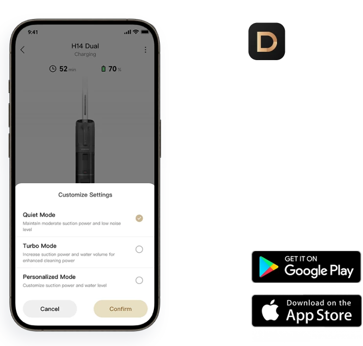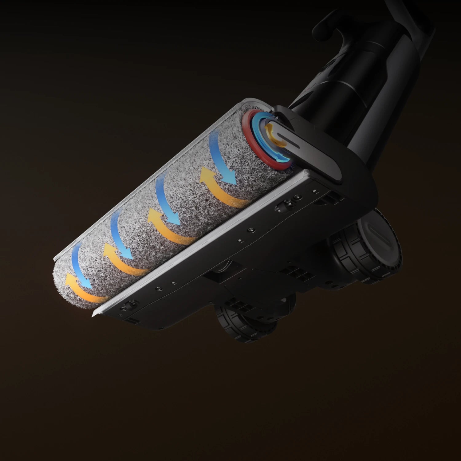 De borstel met dubbele rotatie van de H14 Dual simuleert handmatig wassen om vuil water uit te wringen en tegelijkertijd te voorkomen dat haren verstrikt raken. Hierdoor hoeft u na het schoonmaken alleen maar de vuilwatertank te legen.