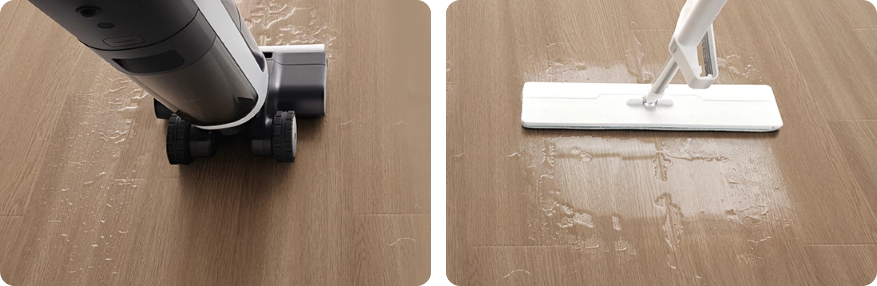 De H14 Dual zorgt voor een grondige reiniging waarbij vrijwel geen waterstrepen achterblijven, om uw vloeren te beschermen. Bij traditioneel dweilen lopen houten vloeren juist het risico op schimmel- en geurvorming, zwelling en kromtrekken.