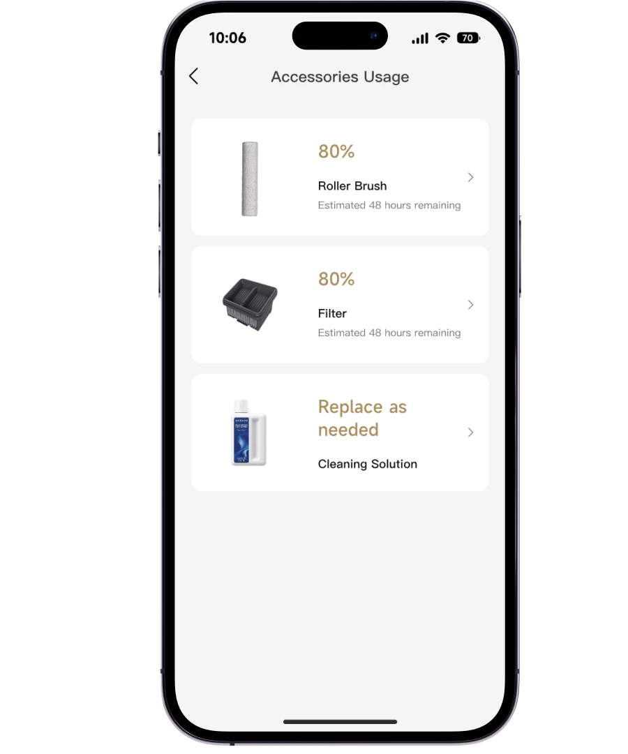Druk na het schoonmaken één keer op de knop om de borstel te wassen en te drogen. De hoge temperatuur zorgt voor een volledig automatisch zelfreinigingsproces dat vuil en geurtjes verwijdert, waardoor u niet meer handmatig hoeft te schrobben.