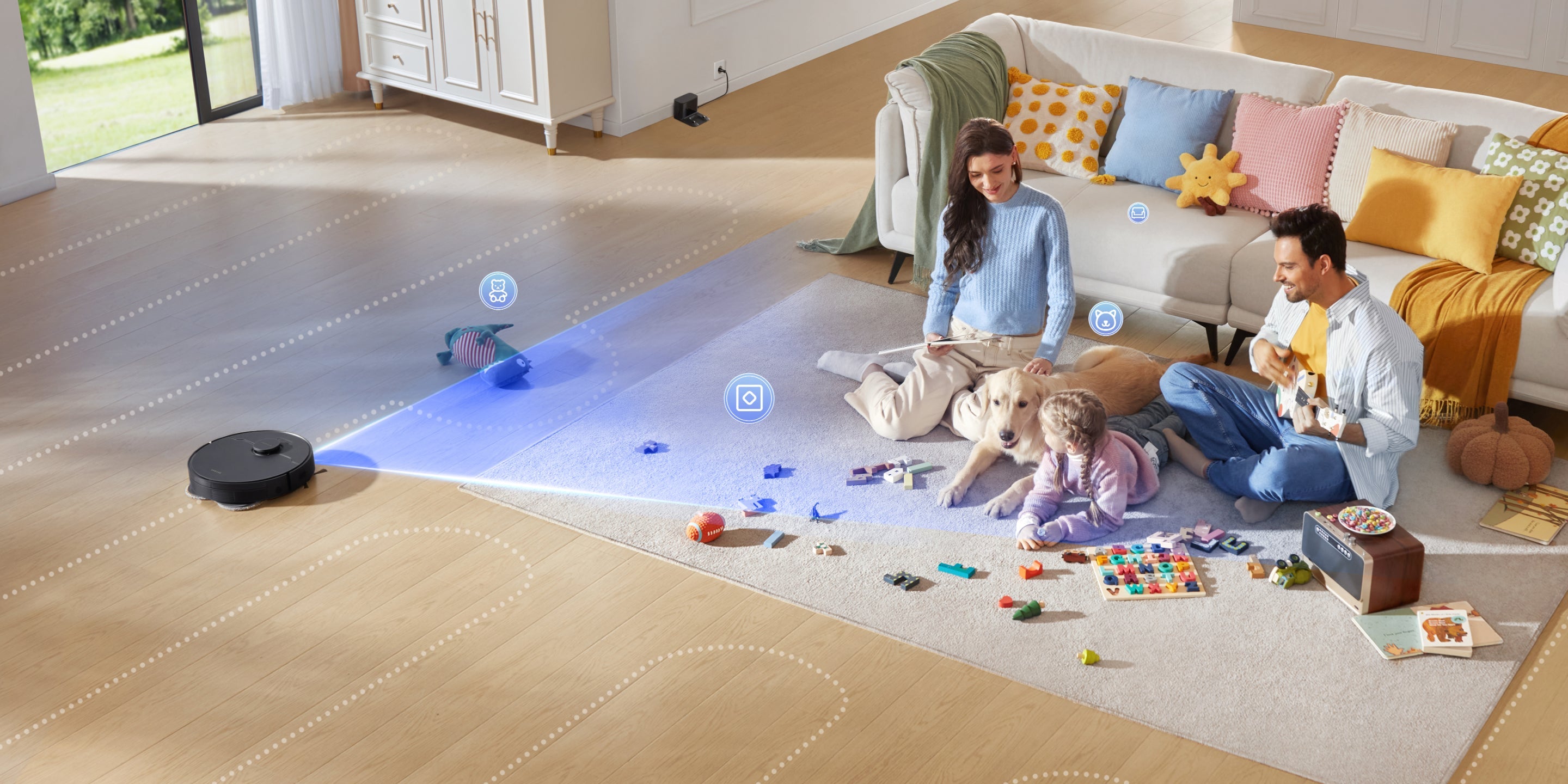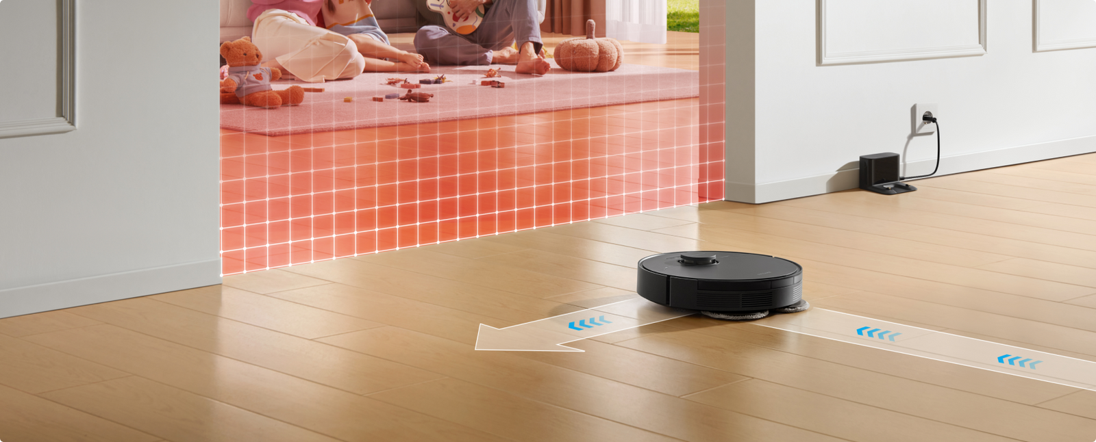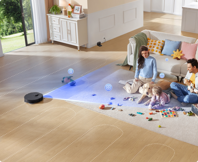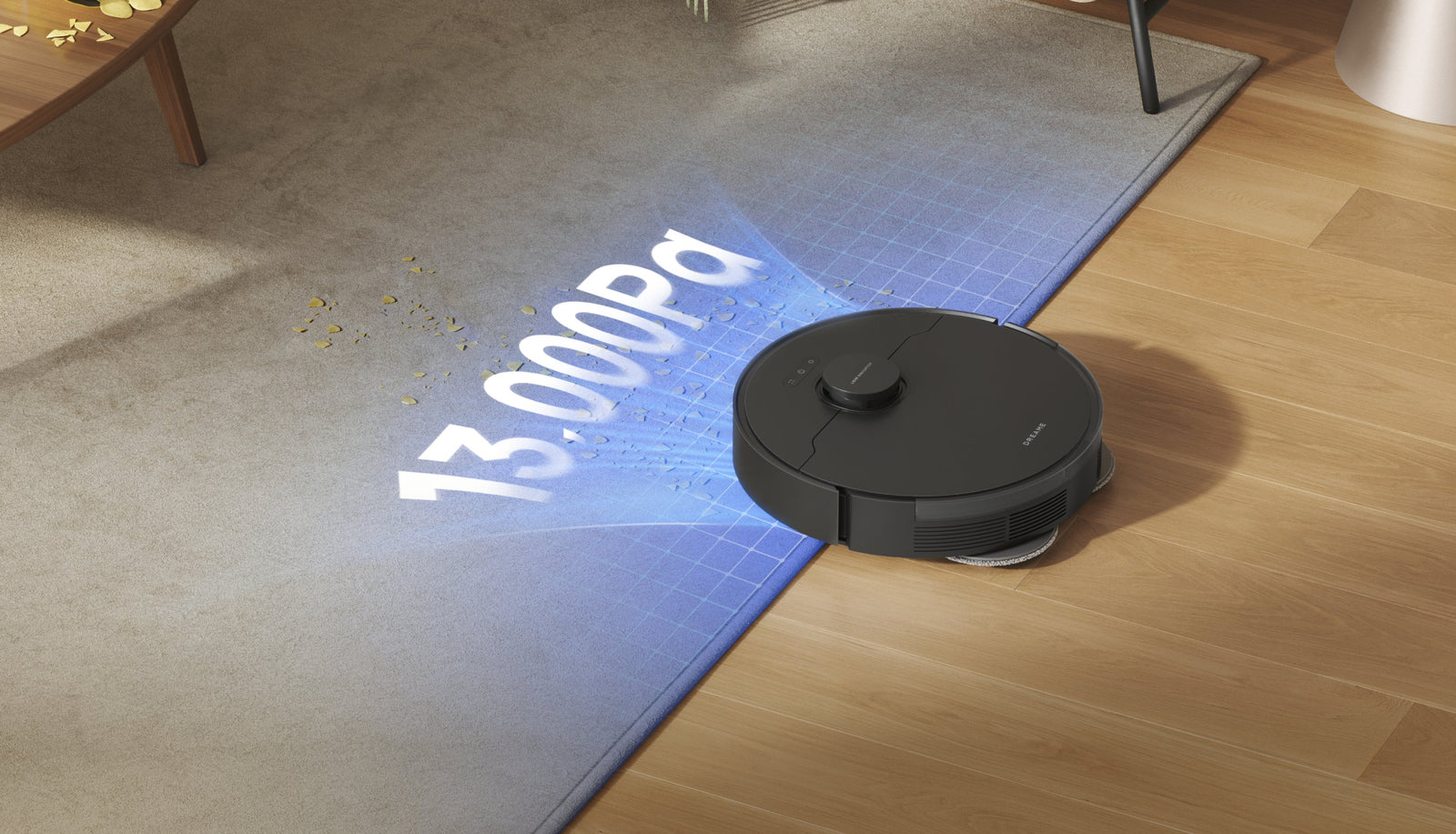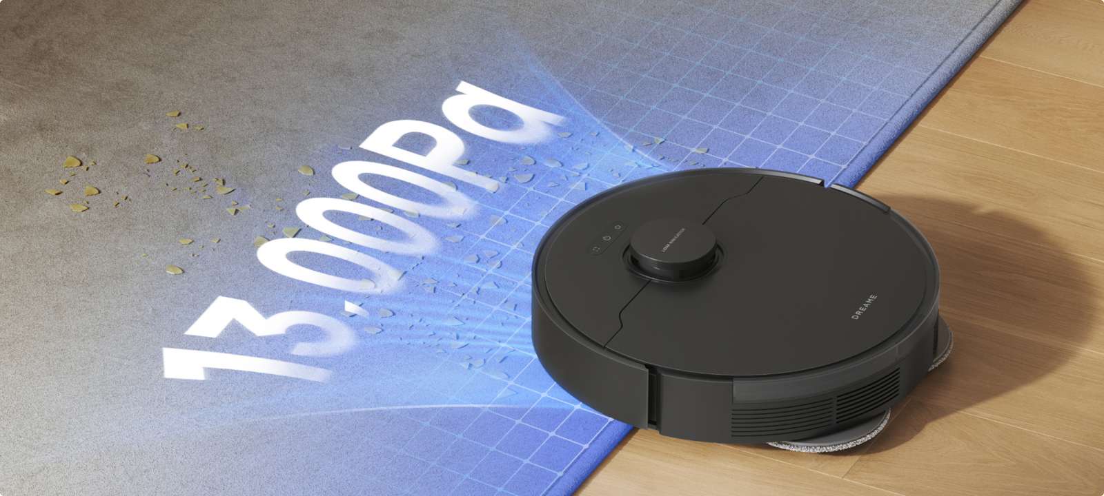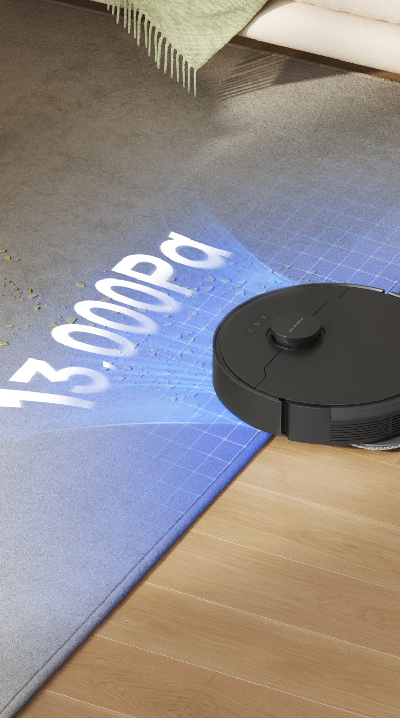 *Om te voorkomen dat ze nat worden, raden wij aan om de robot via de Dreame-app zo in te stellen dat middelhoogpolig en hoogpolig tapijt wordt vermeden.