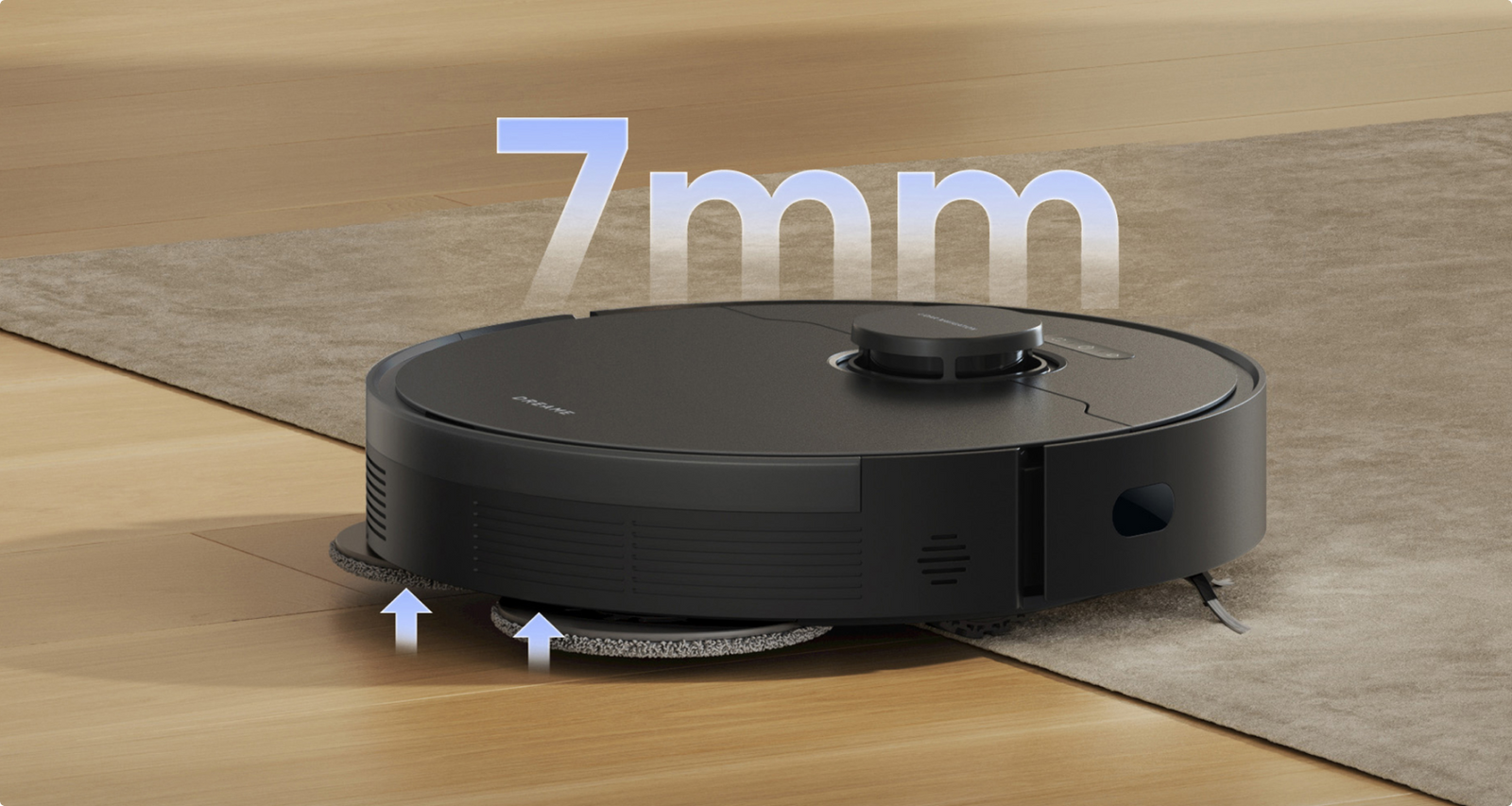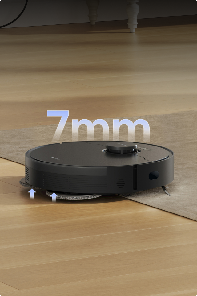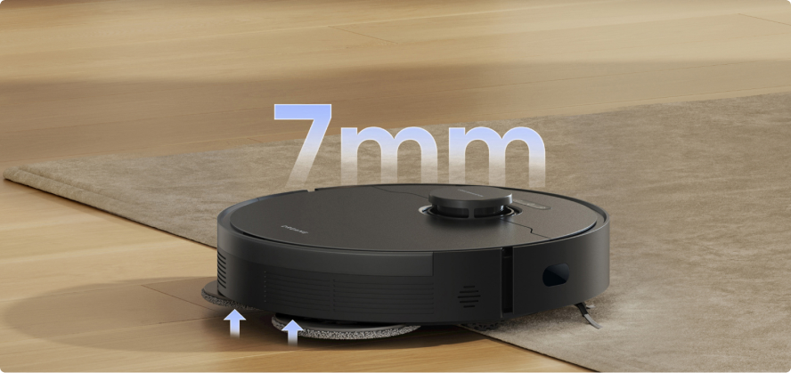 *7 mm: voor tapijten met polen die langer zijn dan 3 mm, wordt gebruikers geadviseerd om vermijdingsgebieden in de app in te stellen of de dweil te verwijderen.