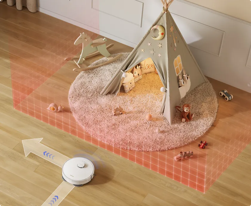 *Om te voorkomen dat ze nat worden, raden wij aan om de robot via de Dreame-app zo in te stellen dat middelhoogpolig en hoogpolig tapijt wordt vermeden.