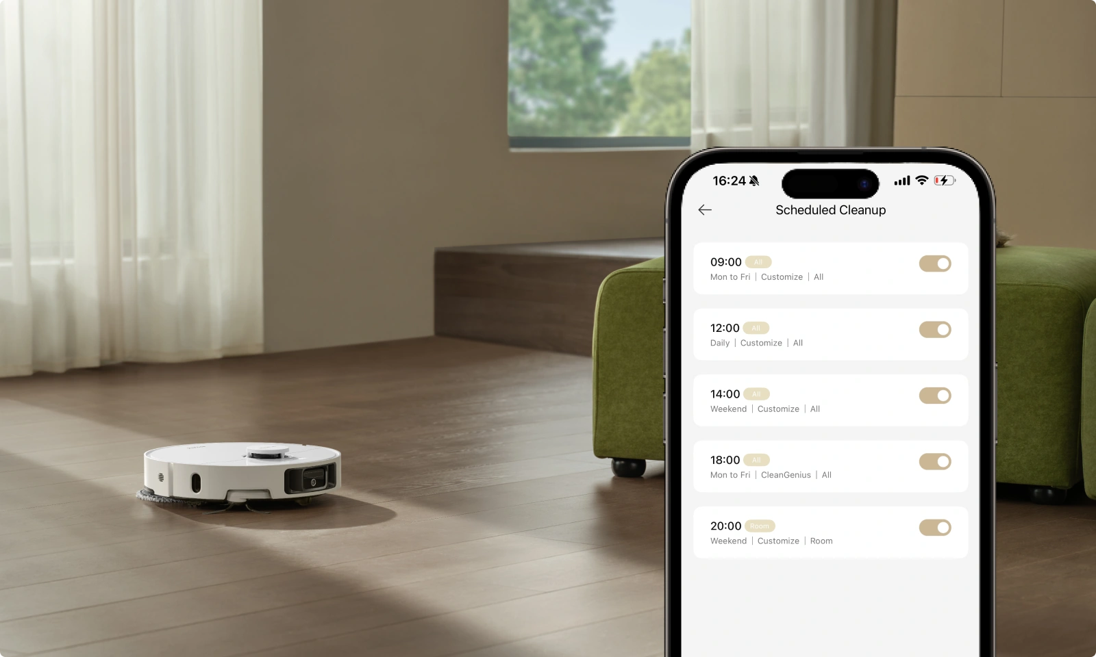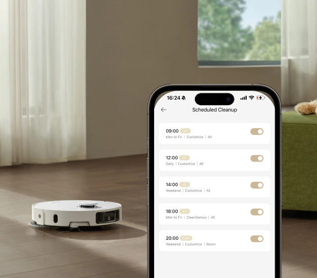 *4 reinigingsstanden: Snel/Standaard/Intensief/Grondig (alleen beschikbaar in de modus voor dweilen en de modus voor dweilen na stofzuigen).