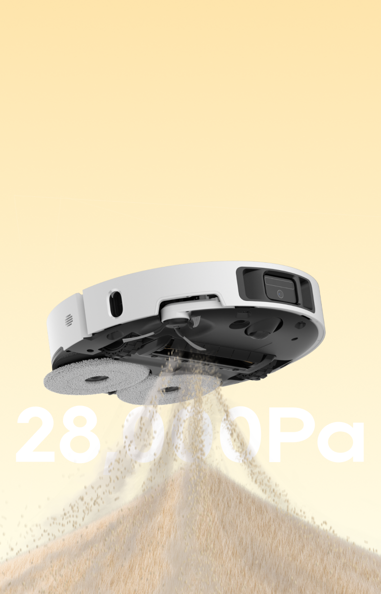 De Vormax-zuigkracht van 28.000 Pa zorgt voor een gelijkmatige dekking en vangt stof, haar en ander vuil op van zowel harde vloeren als tapijt, waardoor er geen plekken worden overgeslagen.