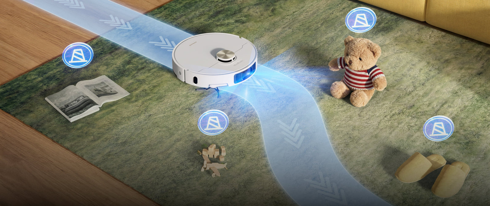 Slimme Pathfinder-technologie brengt uw huis nauwkeurig in kaart, plant efficiënte routes, vermijdt obstakels en reinigt alleen de gebieden die u kiest.