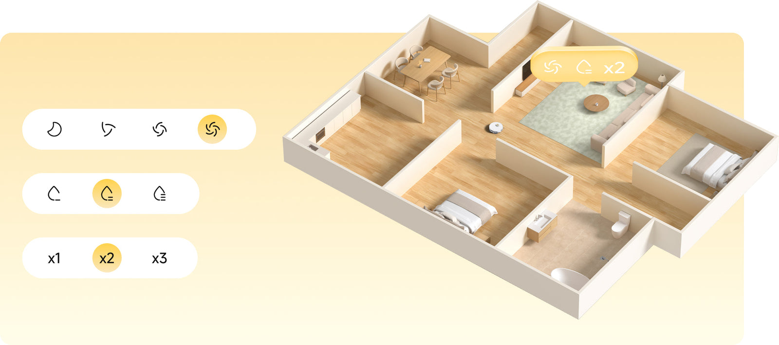 Geniet van een naadloos slim huis met Matter en spraakbediening, die samenwerken tussen compatibele apparaten om uw schoonmaakruimte optimaal te beheren.