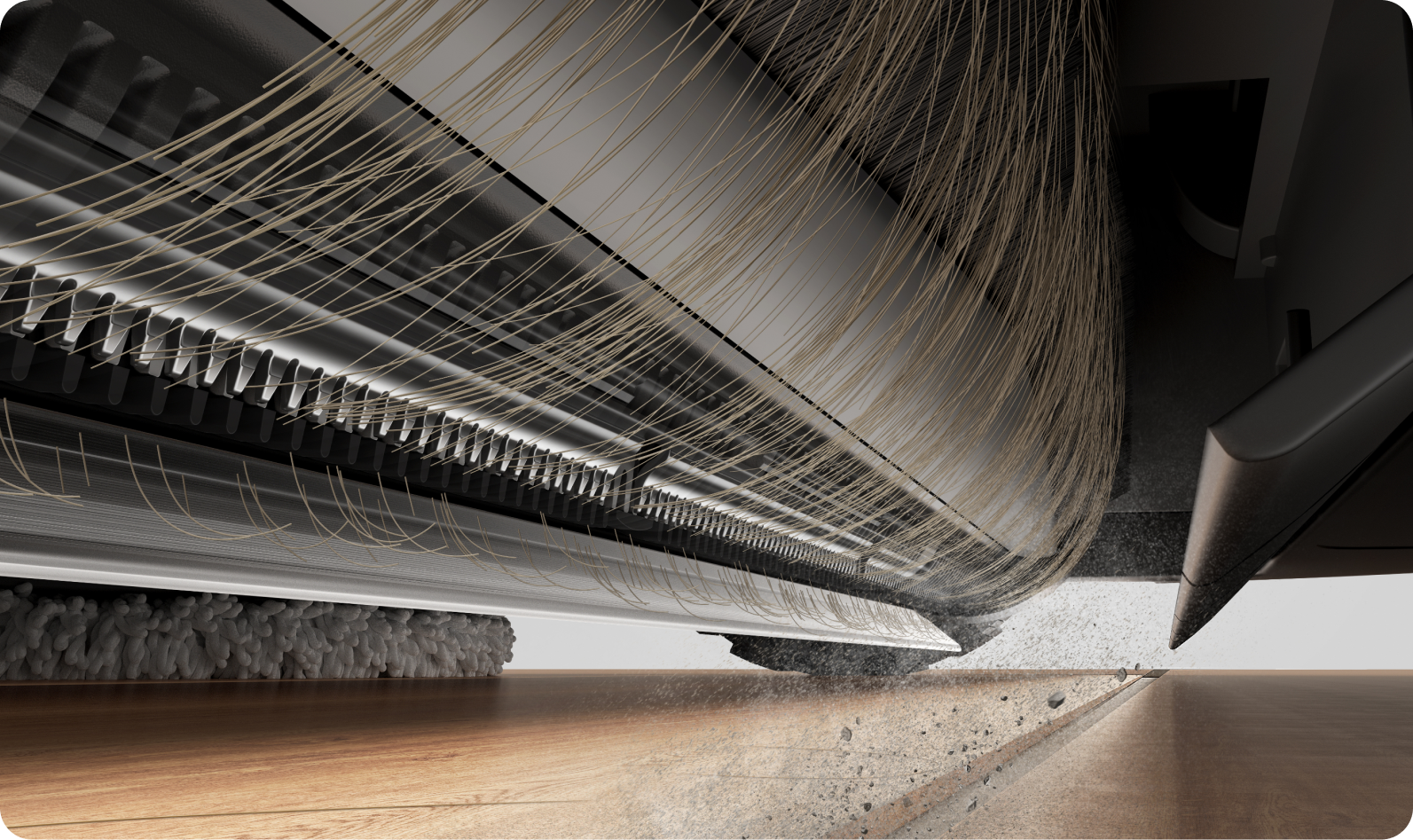 Een anti-klit zijborstel vermindert het vastlopen van haar bij de bron, waardoor een consistente reiniging van de randen en minder handmatig onderhoud wordt gegarandeerd.