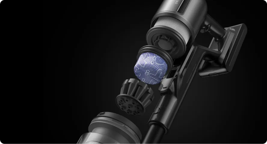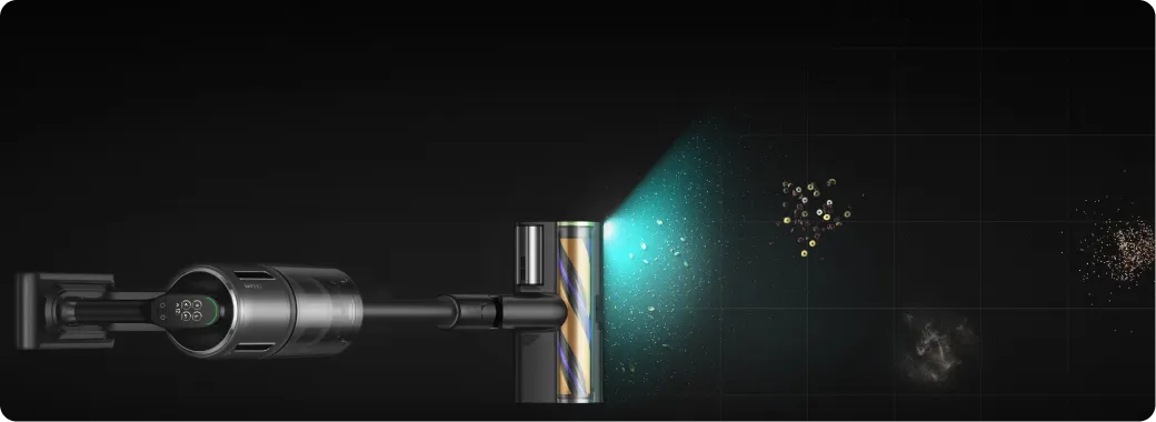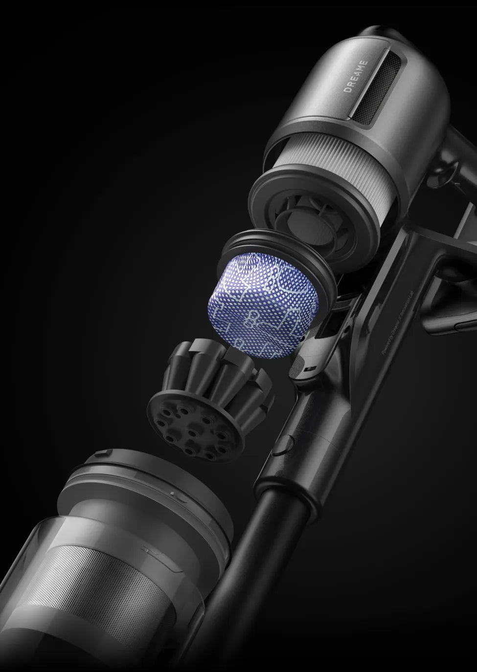 *310 AW, 150.000 tpm: Op basis van onze interne labgegevens. De werkelijke prestaties kunnen variëren. De zuigkracht van 310 AW vertegenwoordigt vanaf mei 2024 de hoogste waarde binnen de Dreame-productlijn van snoerloze steelstofzuigers.