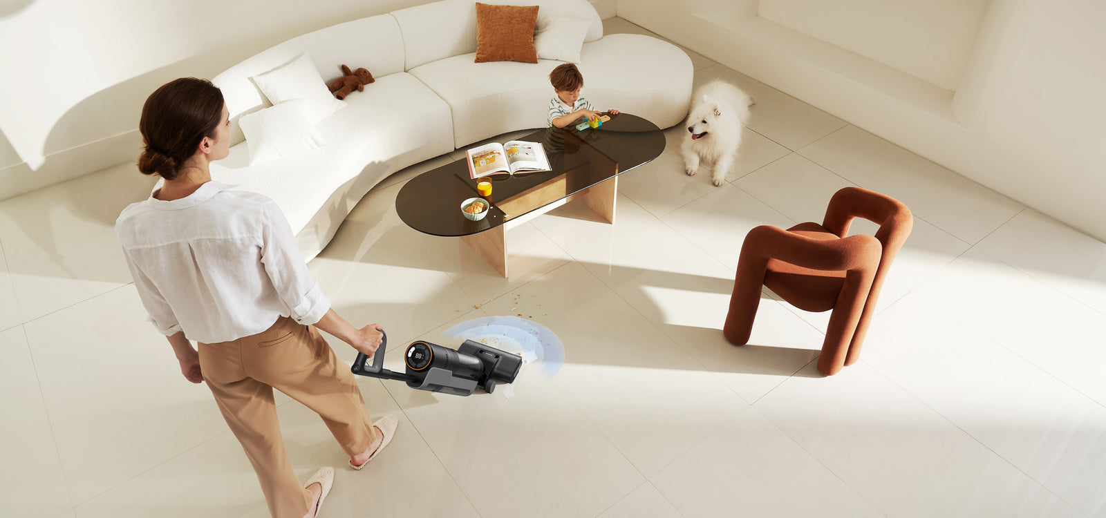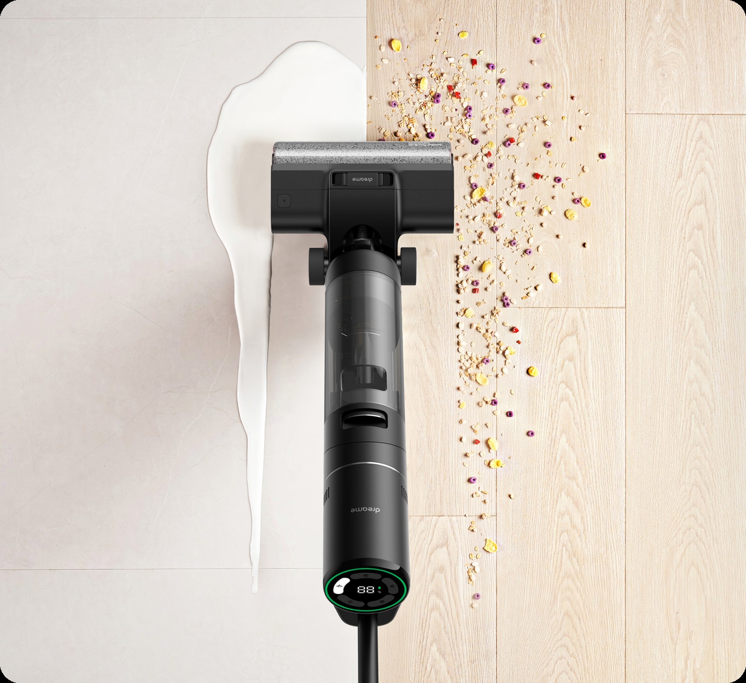 Dankzij een accu met hoge capaciteit kunt u in één schoonmaakbeurt langer schoonmaken, een groter bereik schoonmaken en meer vuil opruimen. Met een accu van 6 x 4000 mAh kunt u ruim een half uur* schoonmaken voordat opnieuw moet worden opgeladen. Cijfers die zijn vastgesteld tijdens tests in het Dreame Lab. Rapportnr. ZM-W2210-220705-1.