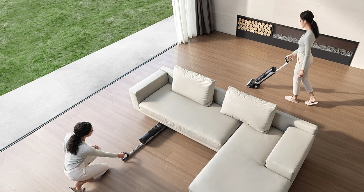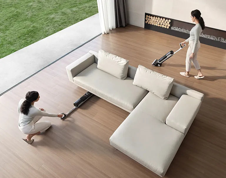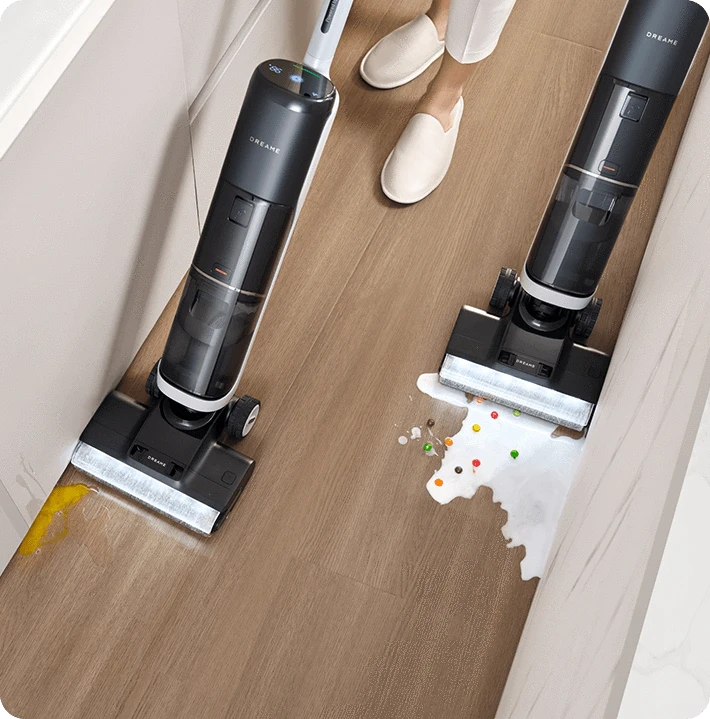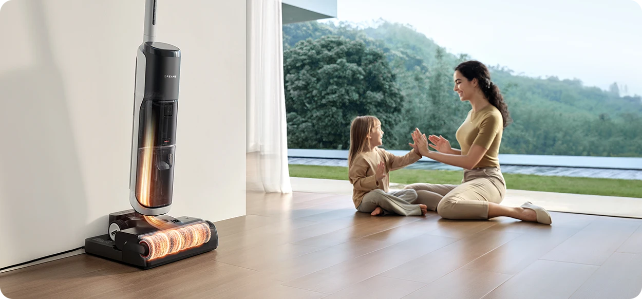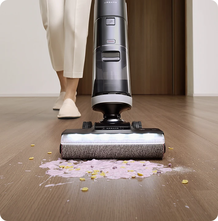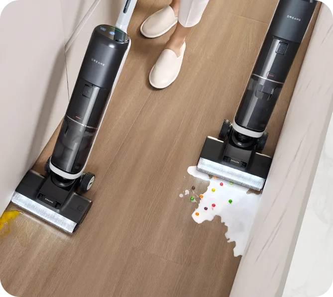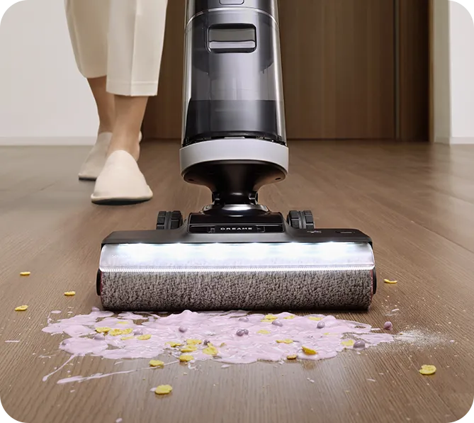 ¹180°, 14 cm, 9,8 cm: De gehele behuizing van de stofzuiger kan ruimtes tot 14 cm diep bereiken en de borstelkop tot 9,8 cm diep, gebaseerd op testgegevens van Dreame Lab.