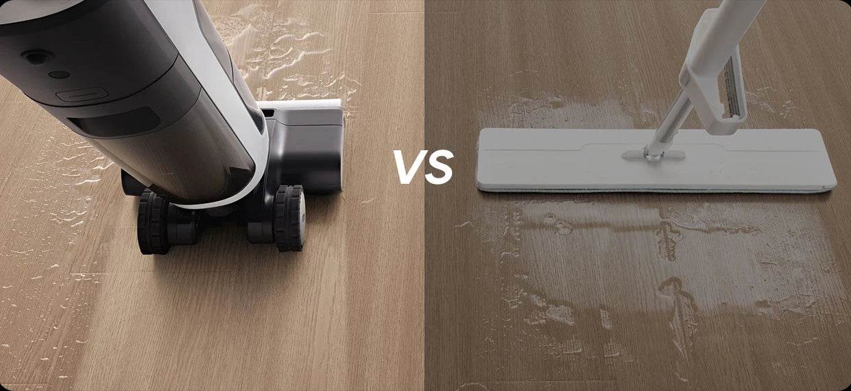 De H14 Pro zorgt voor een grondige reiniging waarbij vrijwel geen watermerken achterblijven⁴ om uw vloeren te beschermen. Maar bij traditioneel dweilen lopen houten vloeren het risico op schimmel- en geurvorming, zwelling en kromtrekken.