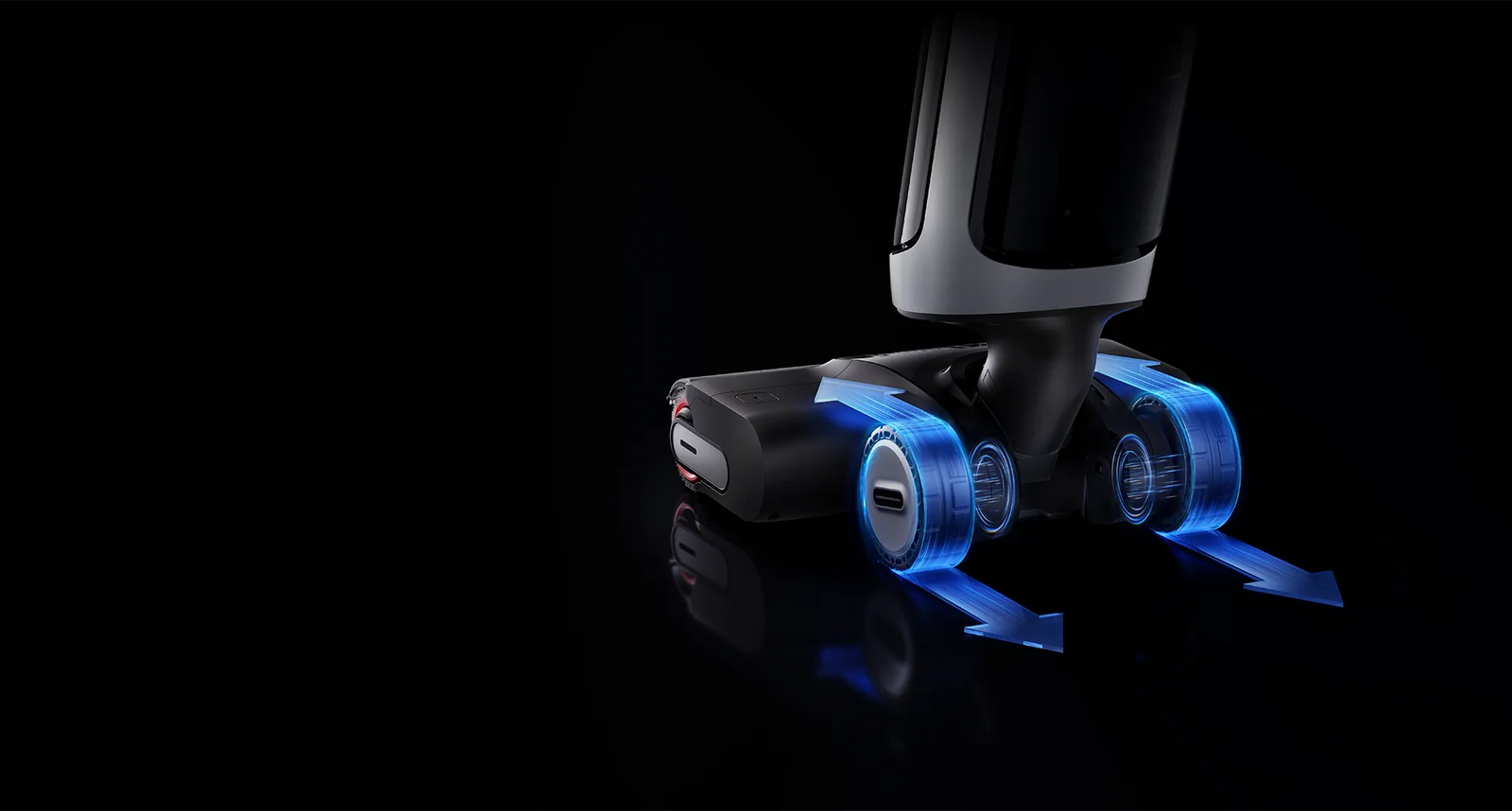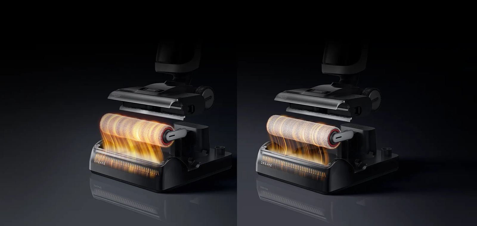 De dubbel draaiende borstel van de H14 Pro simuleert handmatig wassen, waardoor er geen haarklitten in de borstel komen en de borstelkap wordt schoongemaakt.