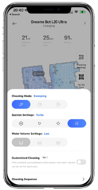 Download de nieuwe app in de App Store of in Google Play voor een soepele ervaring in huis met Dreame. Gebruik de app om uw reiniging aan te passen aan uw huis en schema. Deel kamers in, stel virtuele wanden in, stel verboden zones in en plan alles, heel eenvoudig vanaf uw telefoon.
