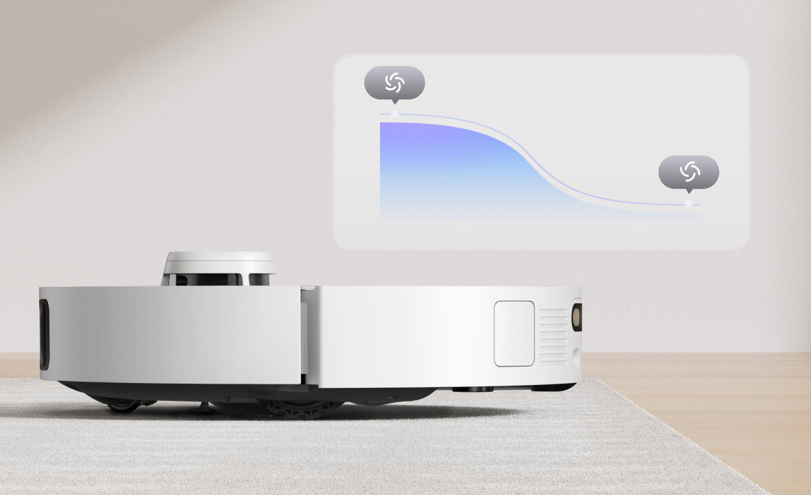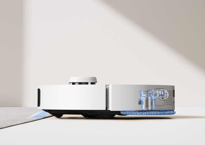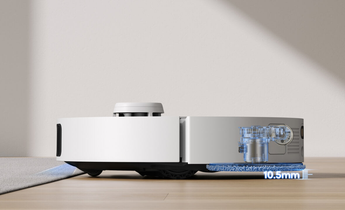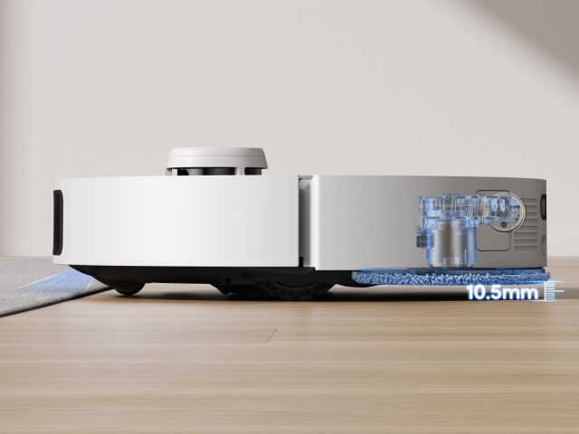 10,5 mm: Het hoogteverschil van de robotstofzuiger voor en na het optillen van de dweil is 10,5 mm. Voor tapijten met polen hoger dan 3 mm raden we u aan de robot via de Dreamehome-app in te stellen om middelhoge en hoogpolige tapijten te vermijden. Zo voorkomt u dat uw tapijt nat wordt.