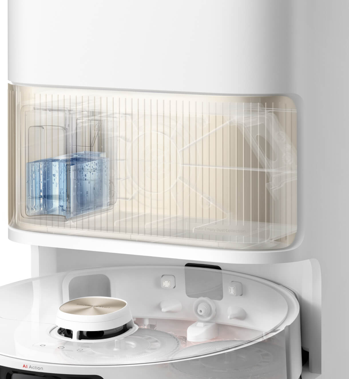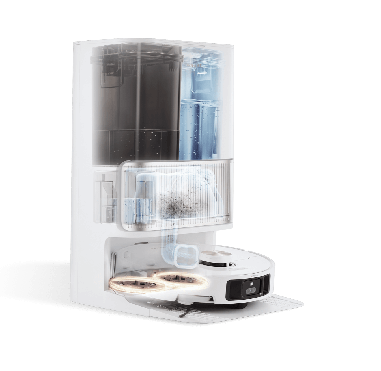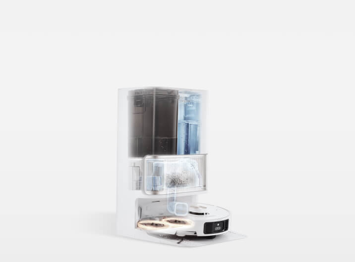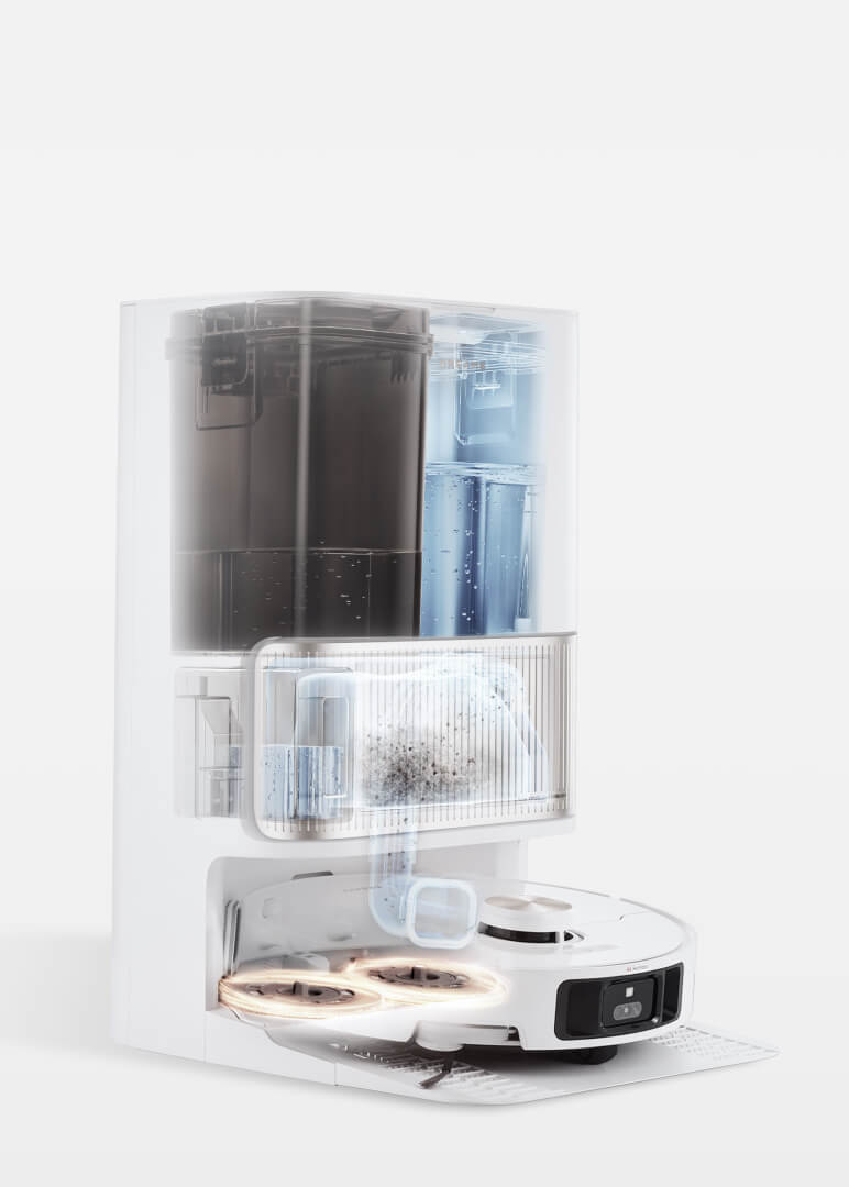 Dankzij de slimme camera en 3D-gestructureerd licht detecteert en vermijdt de L40 Ultra tot 100 soorten objecten*, waaronder kabels en schoenen. De ingebouwde ledverlichting van de stofzuiger helpt bij het navigeren in slecht verlichte gebieden.