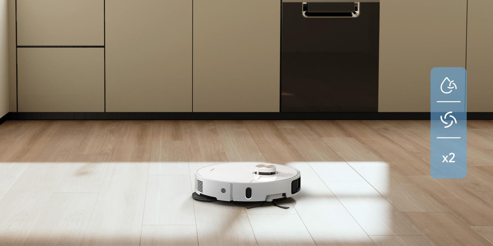 Voorkom strepen na het dweilen met de functie Dweil opnieuw wassen en vloer opnieuw dweilen. Pas de reiniging aan naar wens, met 32 vochtniveaus in de Dreamehome-app.
