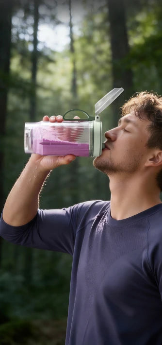 4. Tot vijftien keer blenden in één laadbeurt: met een volledig opgeladen batterij, met gebruik van 200 g wortel + 300 g water per cyclus in modus MENGEN (40 seconden blenden, 1 minuut pauze), cyclus tot vijftien keer herhaalbaar voordat de laagspanningsbeveiliging geactiveerd wordt.