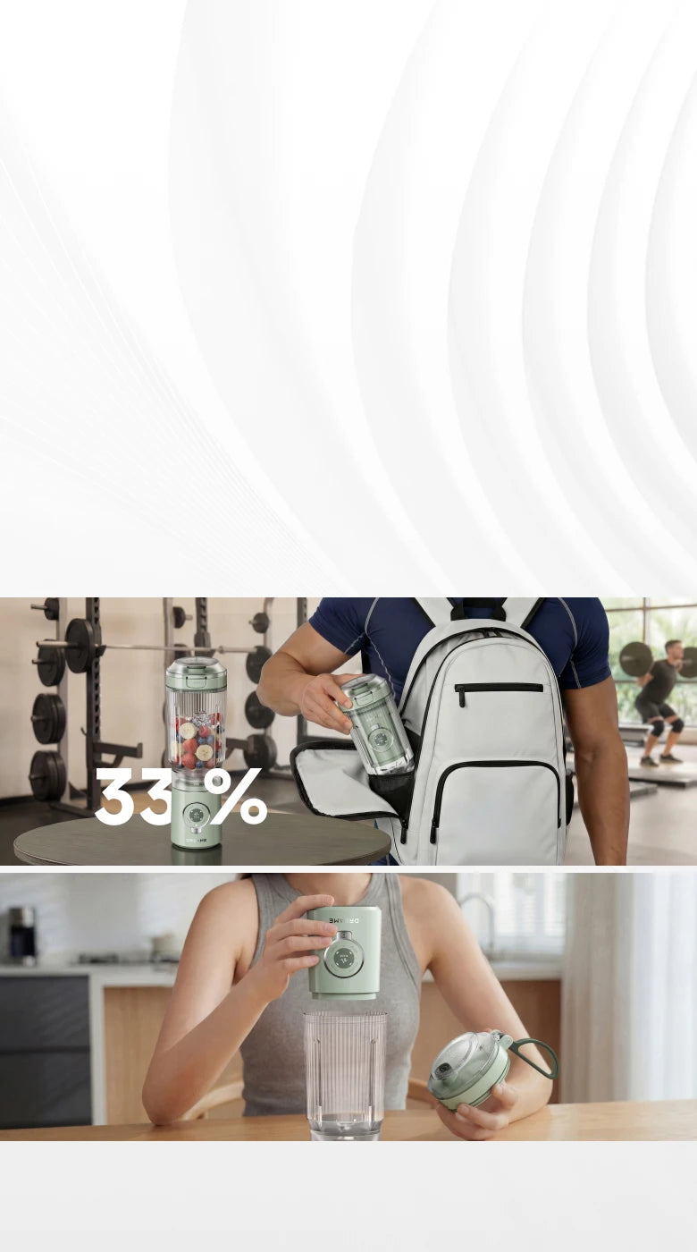2. 33% compacter: ~33% minder volume wanneer de motorbehuizing in de beker is geplaatst, ten opzichte van de gebruikstoestand.