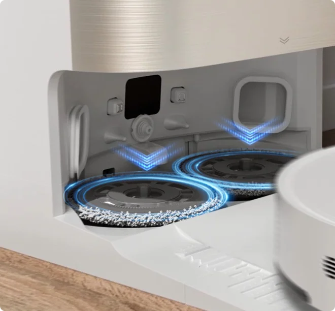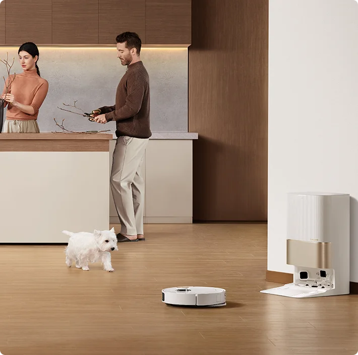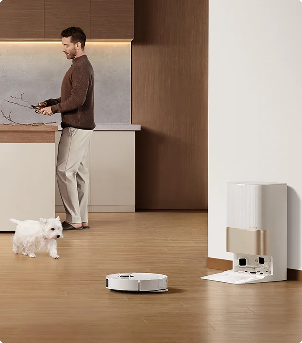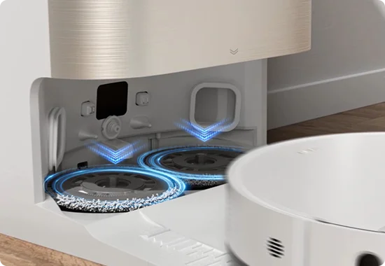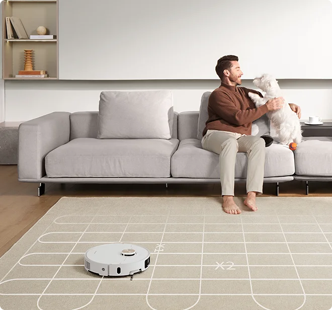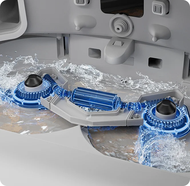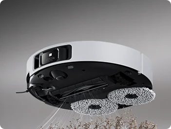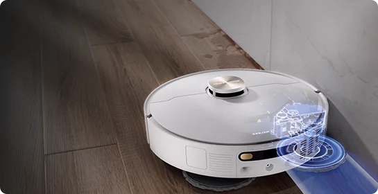 De X40 Ultra Complete detecteert vuil en past de reinigingsmethode dienovereenkomstig aan, van intensief opdweilen van stof tot verwijderen van hardnekkige vlekken, zoals sojasaus. De stofzuiger is voorzien van een optilbare zijborstel om verspreiding van vuil te voorkomen en zorgt voor gedetailleerd en nauwkeurig dweilen op een lagere snelheid*.