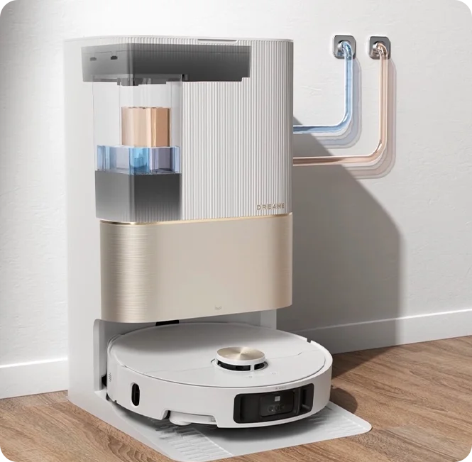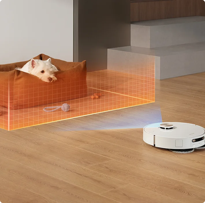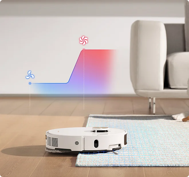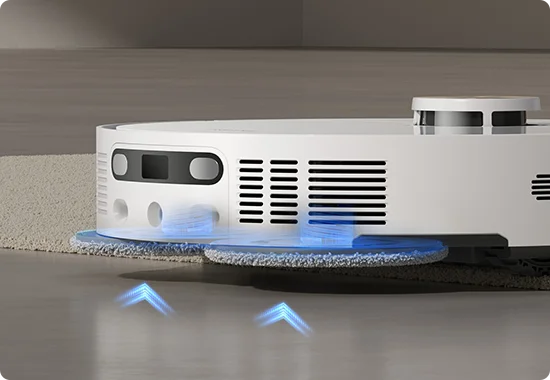 2. 10,5 mm: Het hoogteverschil van de robotstofzuiger voor en na het optillen van de dweil is 10,5 mm. Voor tapijten met polen van langer dan 3 mm raden we u aan de robot in te stellen om middelhoge en hoogpolige tapijten te vermijden via de Dreamehome-app. Zo voorkomt u dat uw tapijt nat wordt.