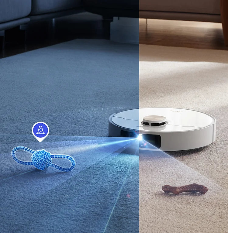 6. 10,5 mm: Het hoogteverschil van de robotstofzuiger voor en na het optillen van de dweil is 10,5 mm. Voor tapijten met polen van langer dan 3 mm raden we u aan de robot in te stellen om middelhoge en hoogpolige tapijten te vermijden via de Dreamehome-app. Zo voorkomt u dat uw tapijt nat wordt.