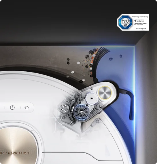 De optilbare zijborstel van de X40 Ultra Complete beweegt meer dan 10 mm* omhoog en omlaag, synchroon met de dweil en hoofdborstel. Daardoor worden natte en droge reiniging efficiënt gescheiden.